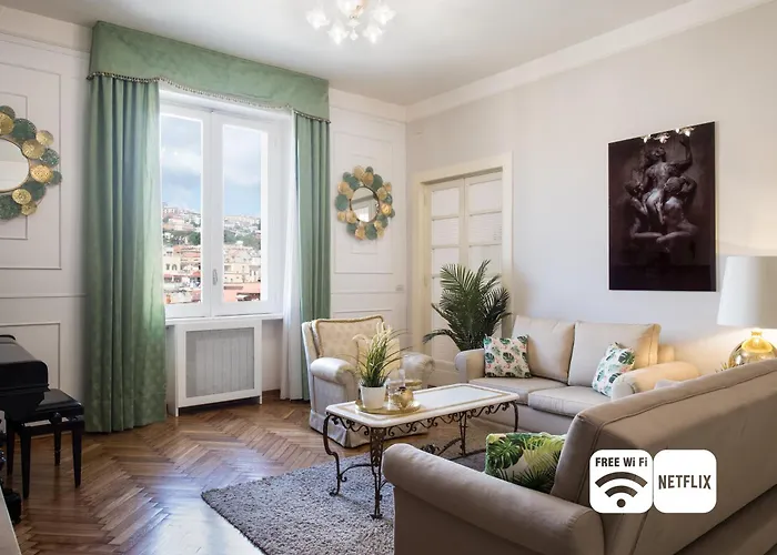 Appartamento Carità Grandi Residenze Napoli, di 160 m², è situato a soli 6 minuti a piedi dalla Biblioteca Nazionale Vittorio Emanuele III e a 5 km dall'aeroporto di Napoli Capodichino. L'appartamento, dotato di una terrazza con viste sulle montagne, si trova a pochi minuti a piedi dalla Fontana del Nettuno.